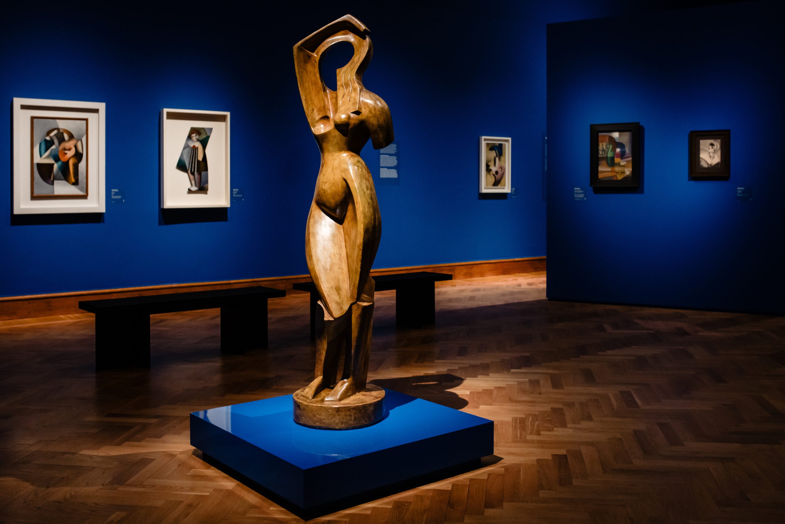 (キュビスムの影響を受けた、幾何学的で革新的な造形が際立つアーキペンコの彫刻と絵画。彼がドナをさらなる抽象化へと導いた)