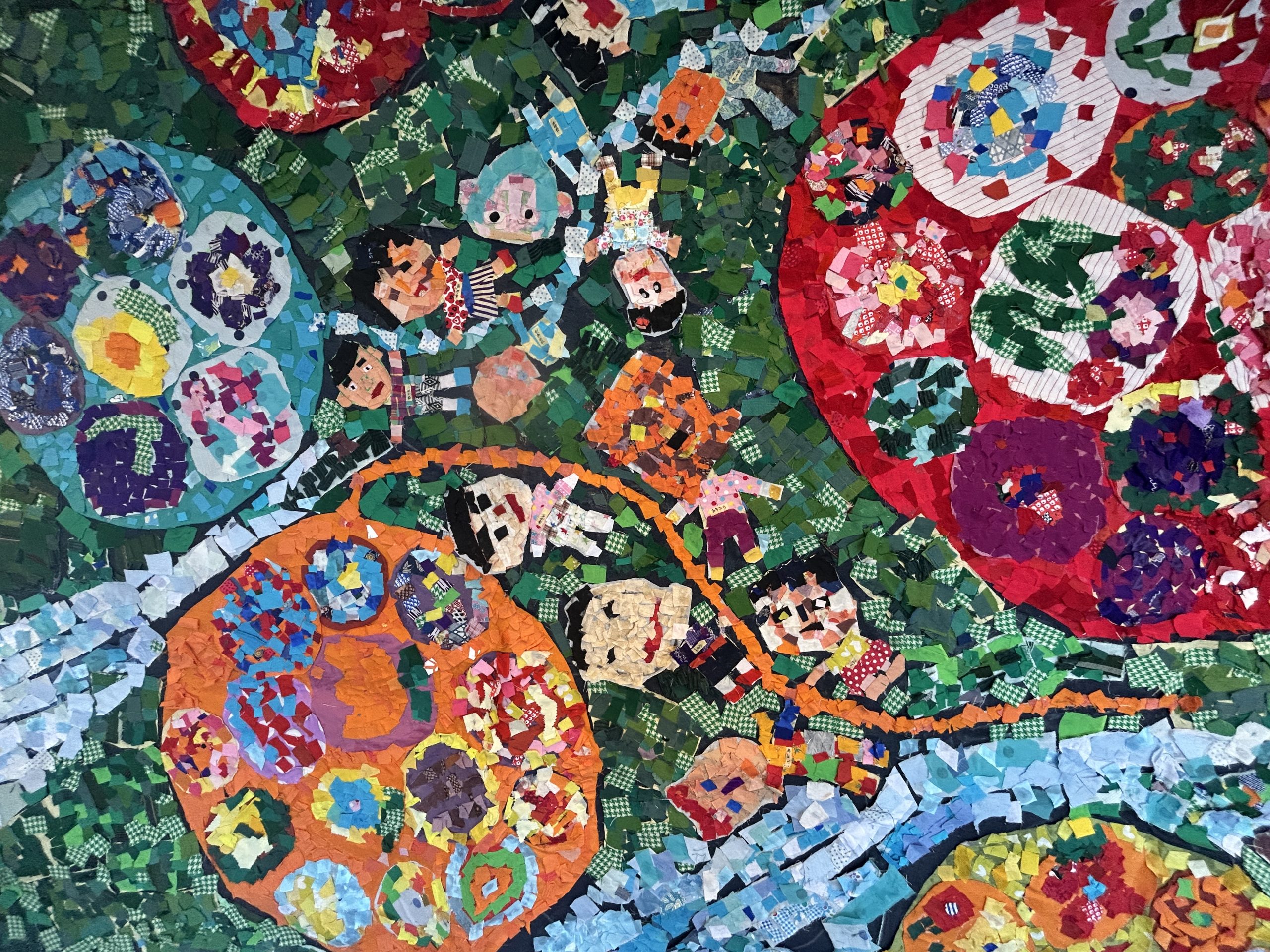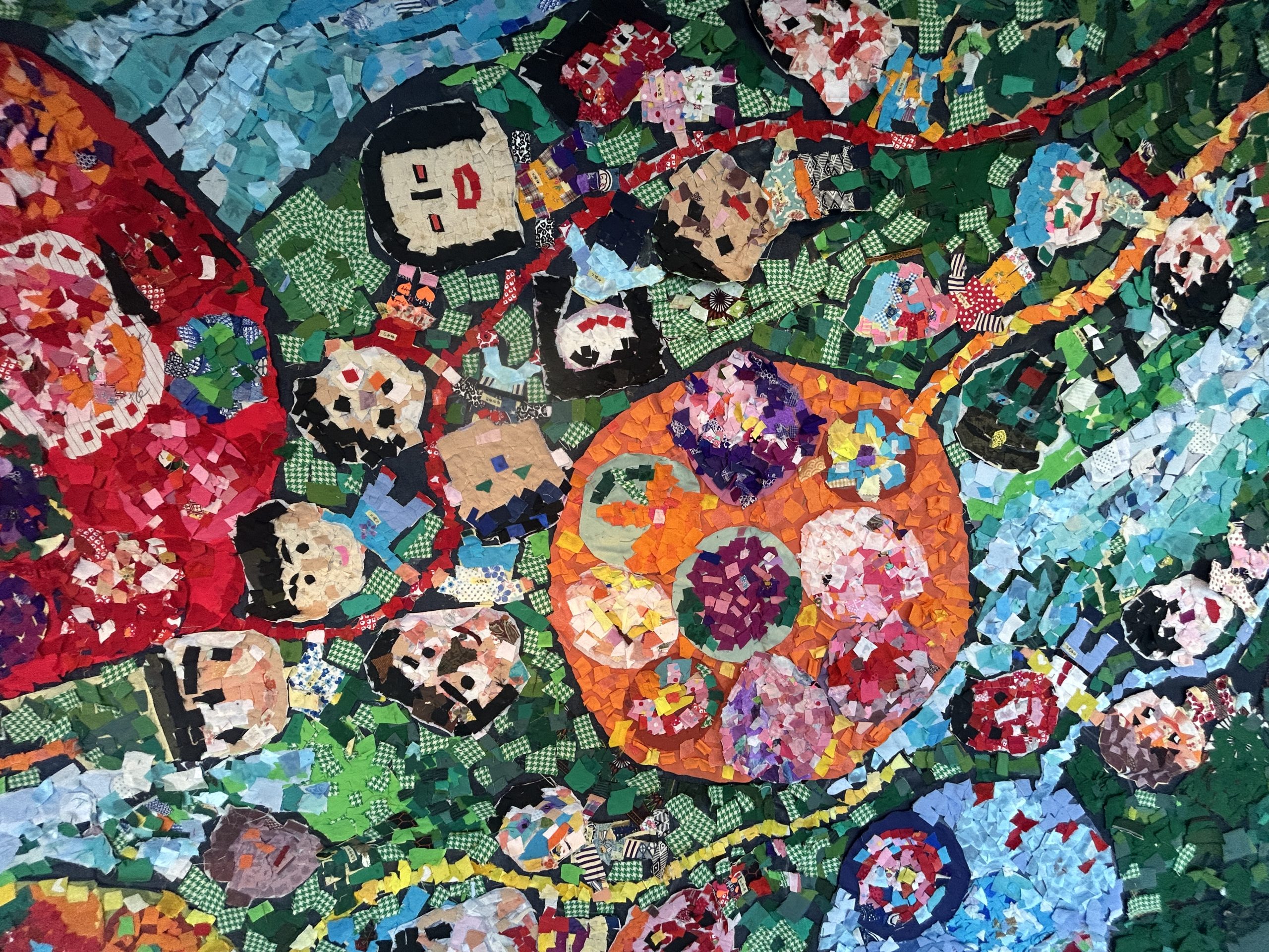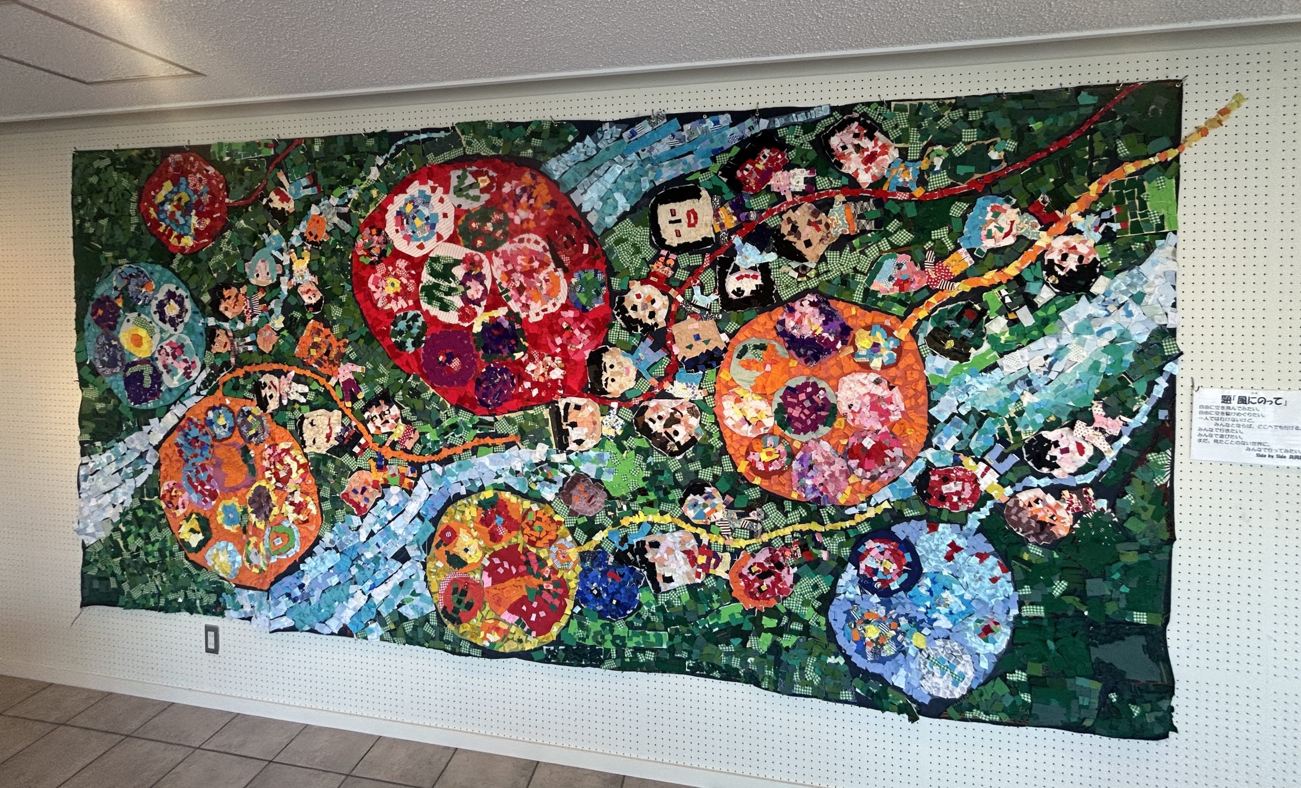 今年の作品名は《風にのって》。市内の協力者の皆さまから寄せられた布を細かく裁断し、丁寧に貼り合わせて仕上げた力作です。